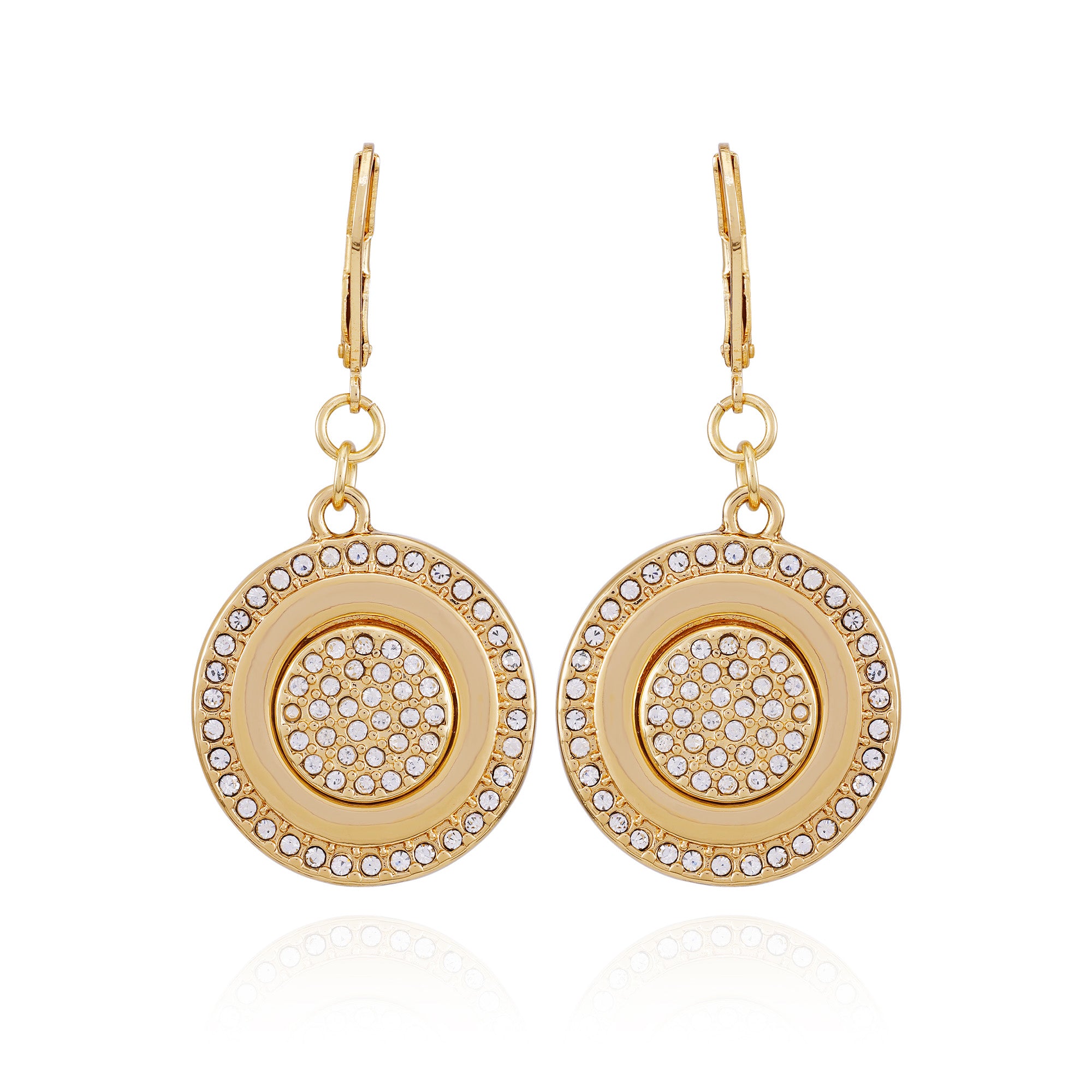 Goldtone Pave Stone Coin Drop Earrings