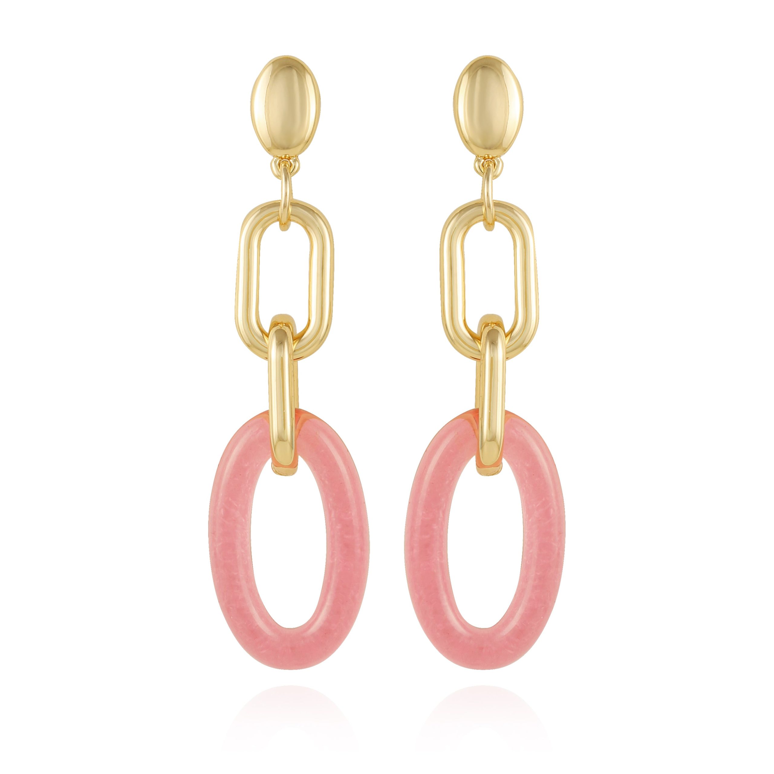 Goldtone Pink Candy Interlocking Drop Earrings