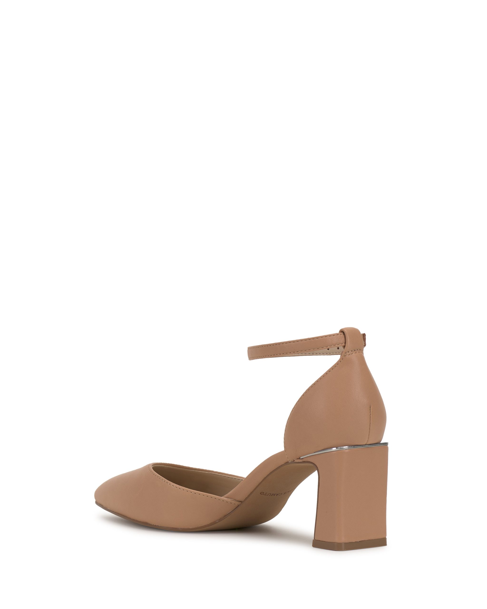 Crafted of leather with a curving heel counter and delicate ankle strap. the Hendriy is set on a slender block heel detailed with polished rand hardware. The pump comes in hues that work with every outfit.